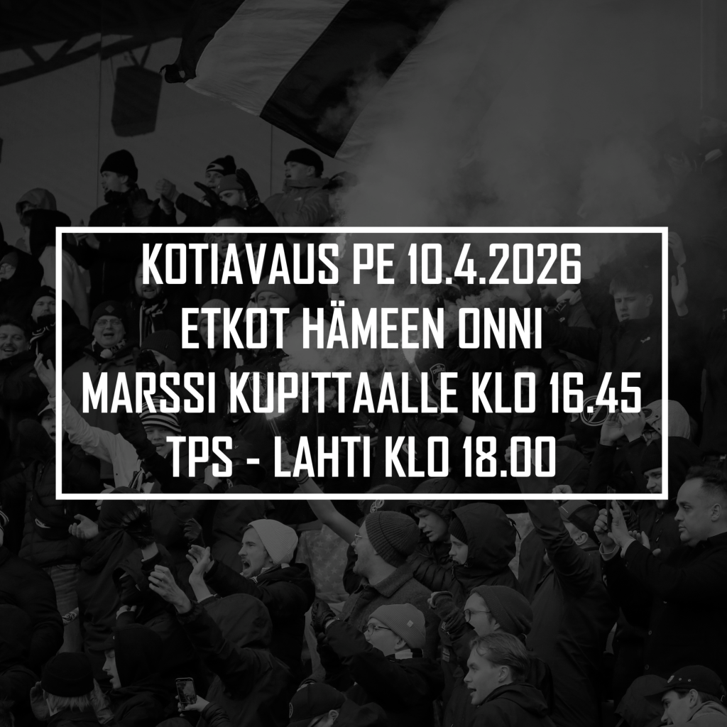 TPS-kannattajat järjestää kannattajamatkan Maarianhaminaan Veikkausliigan otteluun IFK Mariehamn – TPS lauantaina 4.4.2026.